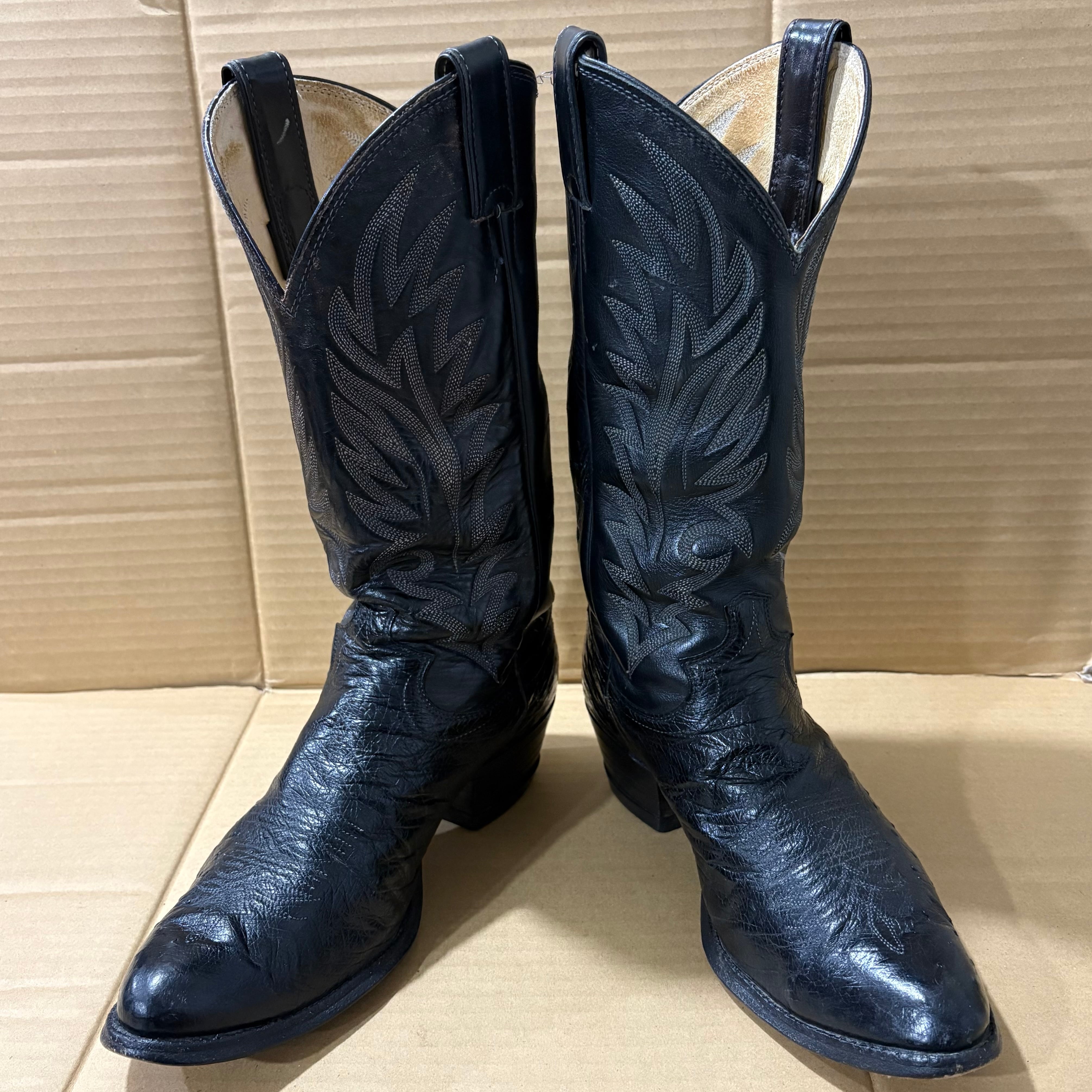 ヴィンテージ80’s US製Justinオーストリッチウエスタンブーツ黒8.5D