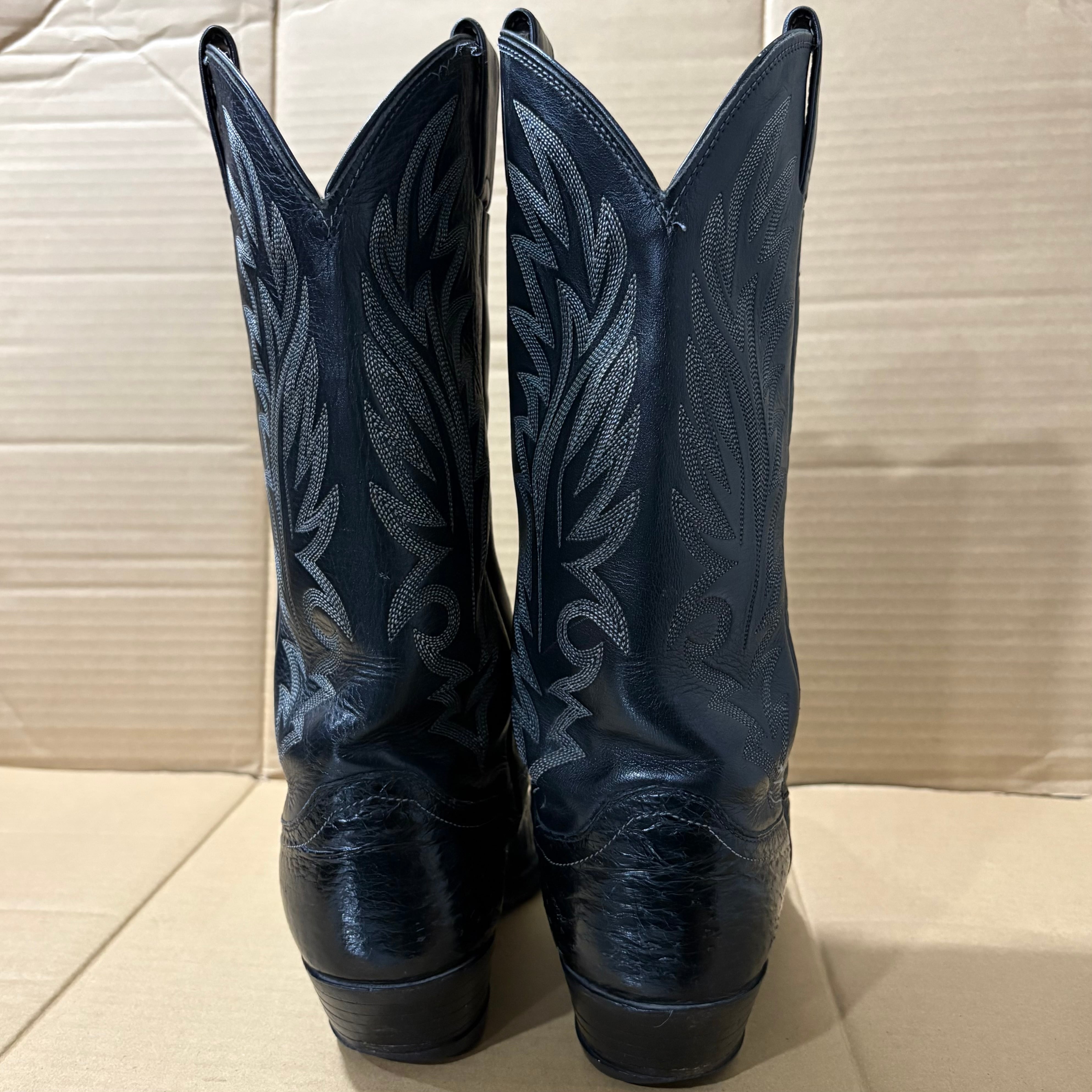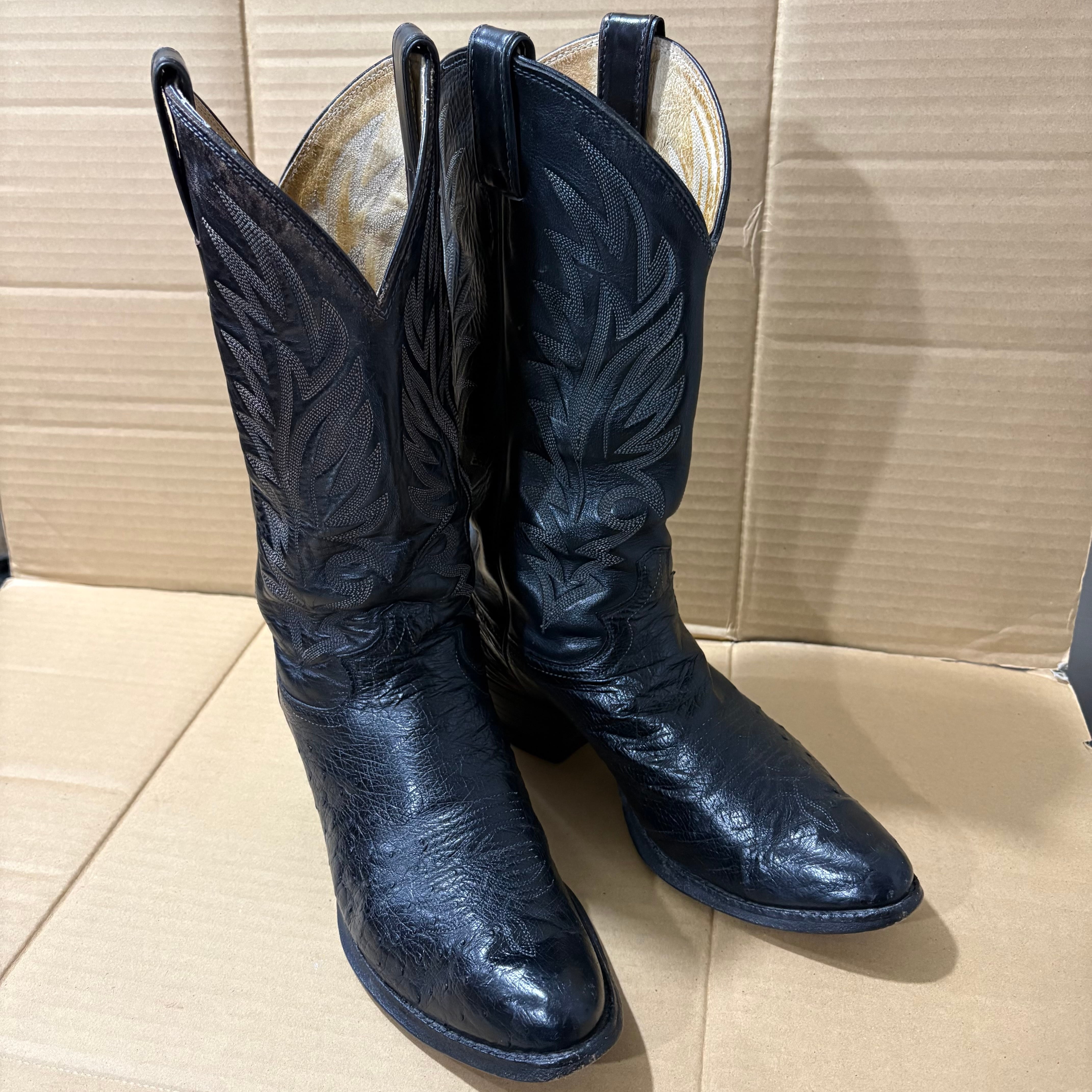 ヴィンテージ 80’s US製 Justin ジャスティン オーストリッチウエスタンブーツ 黒8.5D
