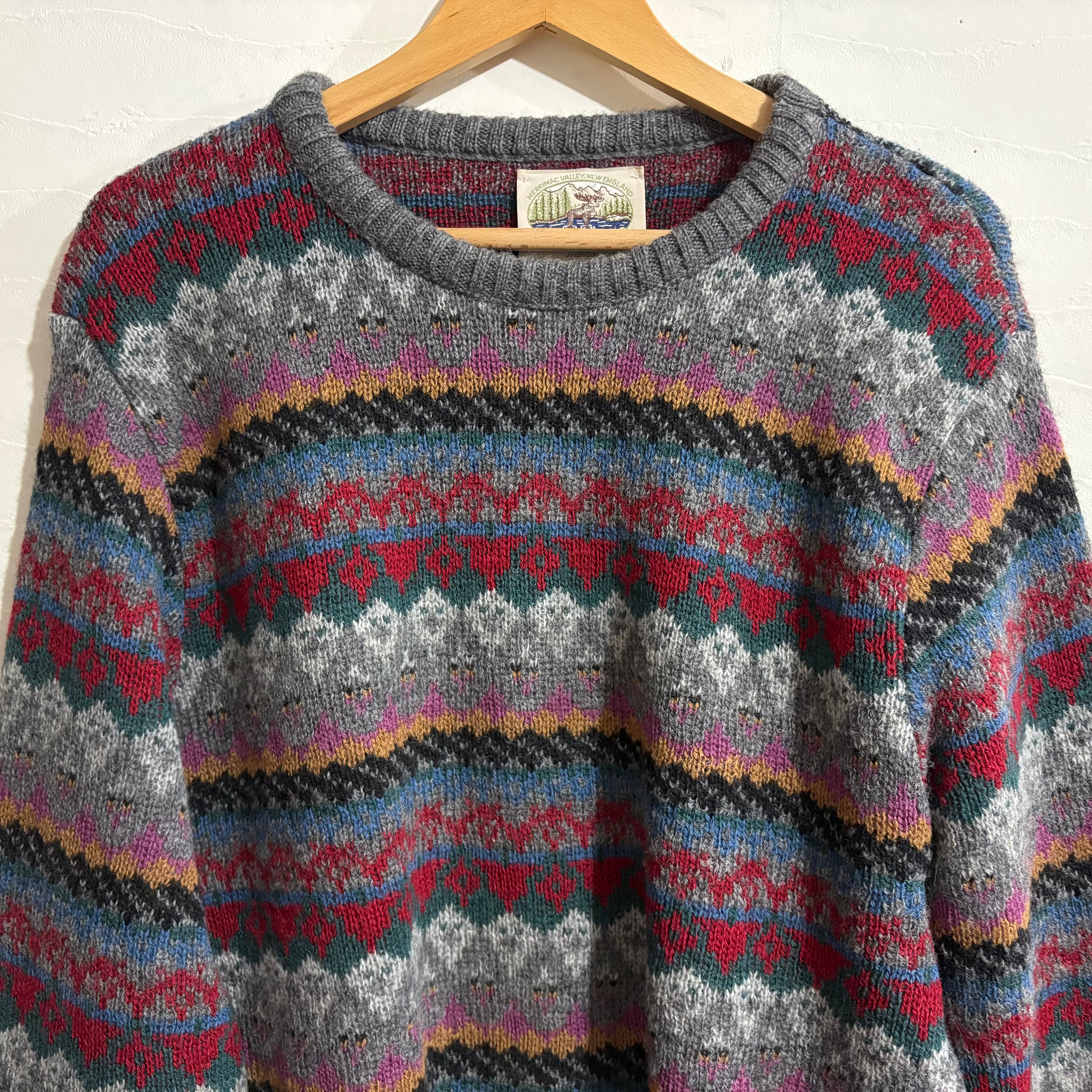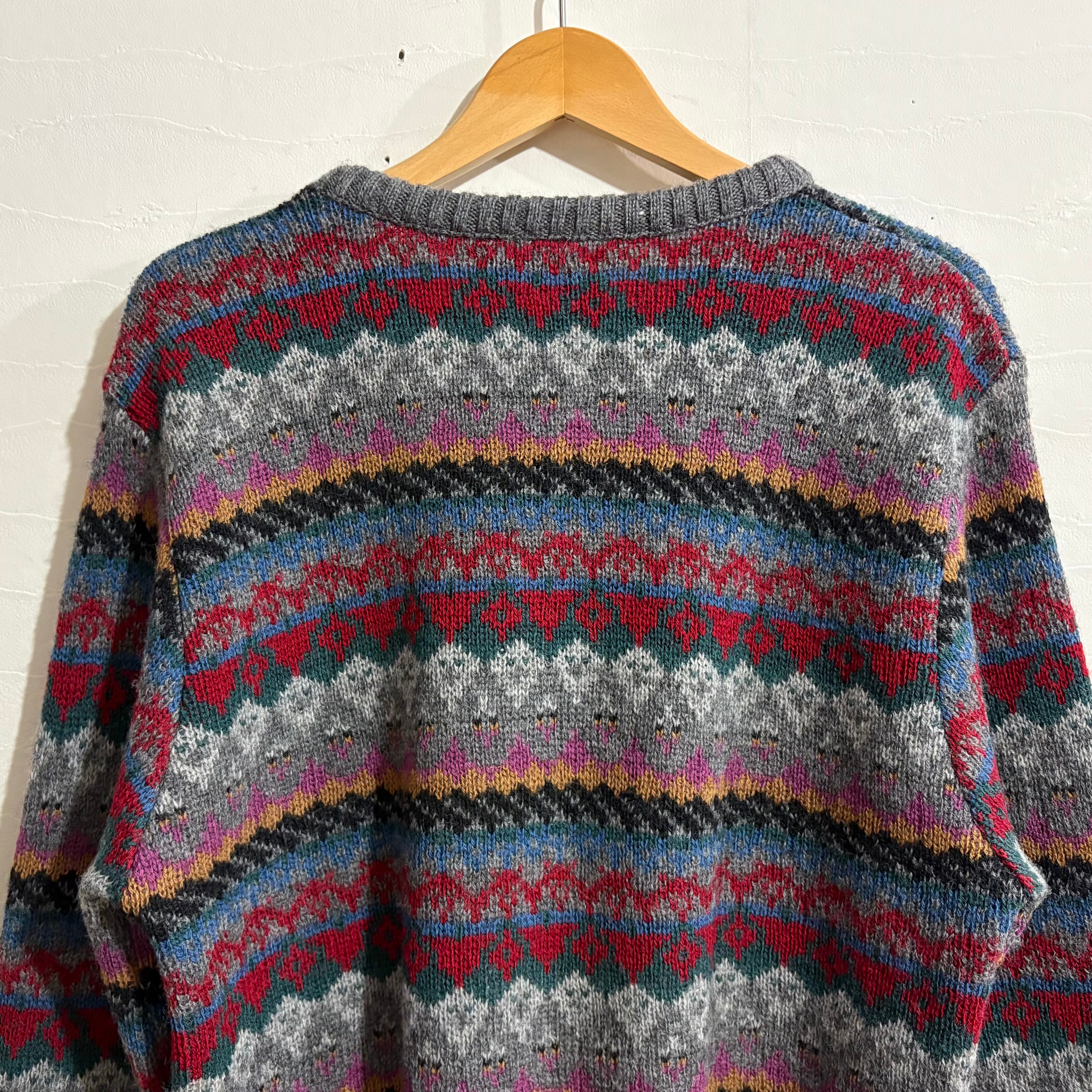 ヴィンテージ 70’sフェアアイル柄ウールセーターALPS 黒タグL