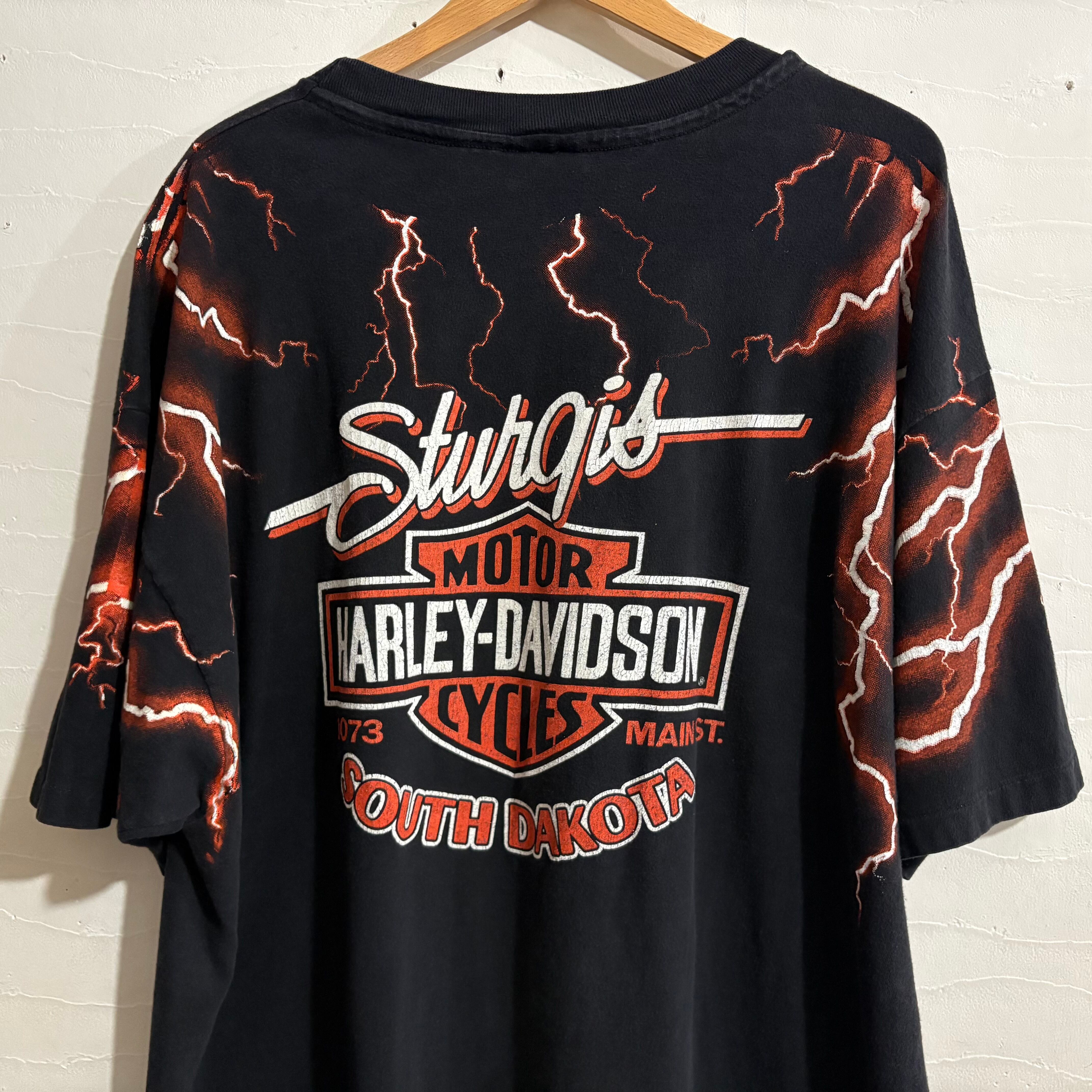 ヴィンテージ90’sUS製ハーレーダビッドソン Tシャツ サンダー柄黒XXL